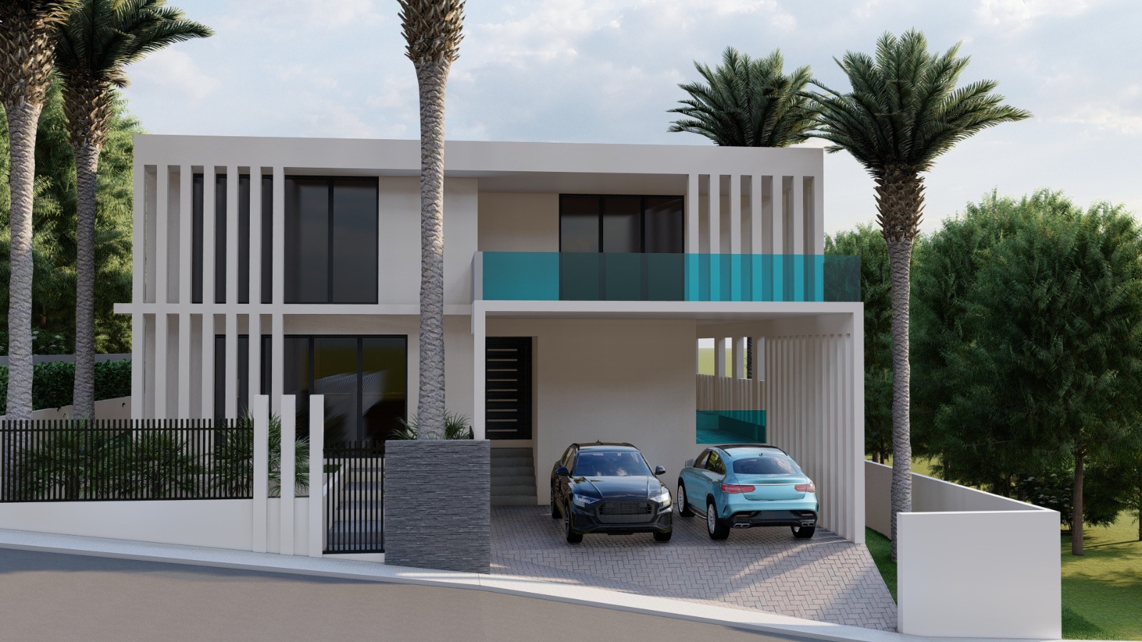Deze villa belichaamt eigentijds ontwerp met intieme plekken op de begane grond en panoramisch uitzicht vanuit de eerste verdieping.