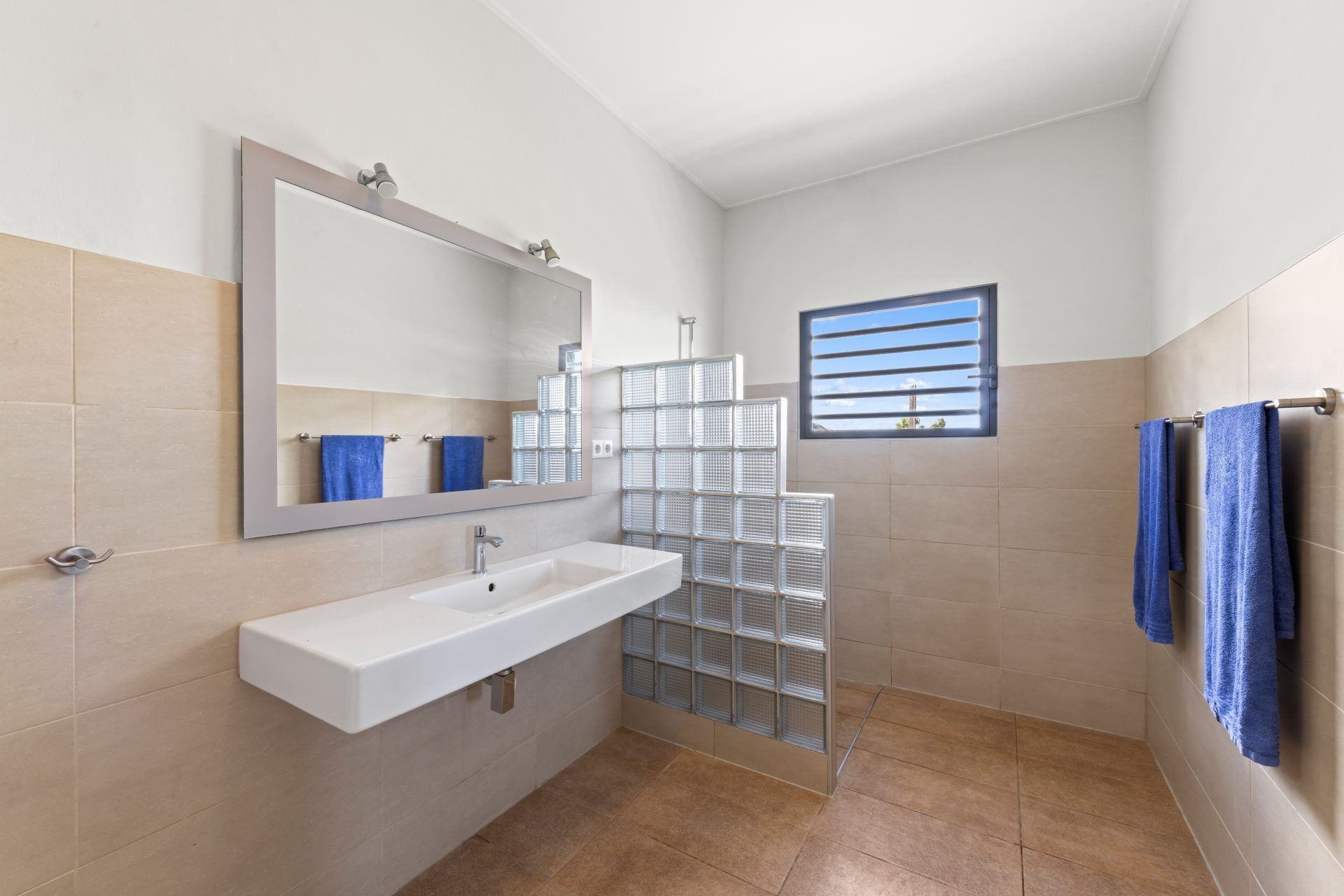 From almost every living area, you overlook the green landscape toward the wind turbines at Playa Kanoa and Tafelberg. Thanks to its elevation and open setting, there is nearly always a pleasant trade wind breeze, making living here exceptionally comfortable, both indoors and outdoors.